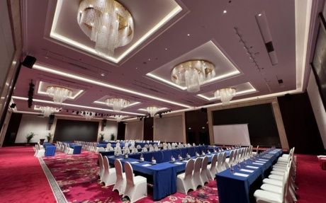 湖南厅(大宴会厅) [ 最大40桌 · 高6.0m · 无柱 · 长方形 · ]